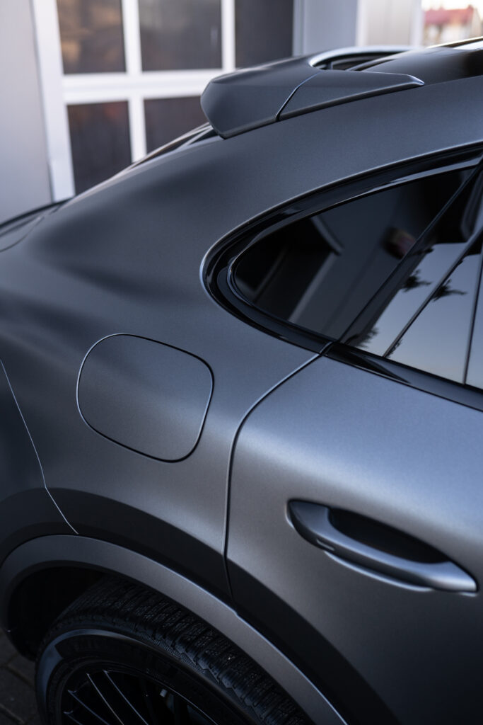 W studiu FCD Folie Car Design w Jelczu-Laskowicach zrealizowaliśmy wyjątkowy projekt dla Porsche Cayenne, łącząc zabezpieczenie lakieru folią ochronną PPF z efektownym satynowym wykończeniem (stealth / satin PPF). To rozwiązanie, które jednocześnie chroni karoserię i nadaje samochodowi nowy, ekskluzywny charakter bez konieczności zmiany koloru lakieru.